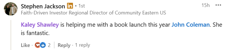 Helping me with my personal brand this year, socials, book launch planned for 2026, building of the Faith-Driven North Georgia Network… I am blessed to work with her.
